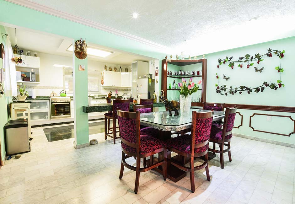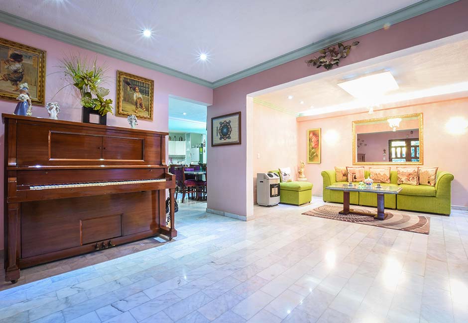 Recámara principal con baño completo, tina de hidromasaje y vestidor, cocina, comedor, sala, recibidor, cuarto de tv, baño completo con cabina de vapor con regadera y sistema de sonido, terraza, patio de servicio, cochera, aire acondicionado frío y caliente, extinguidores y alarmas de emergencia, detectores de gas y humo.