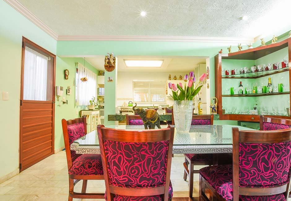 Hermosa casa estilo francés, amueblada y decorada con finos y románticos acabados, que forman en conjunto una atmósfera de serenidad, la vista de sus ventanales a los jardines de la quinta, son inigualables… Así como la experiencia de habitarla.