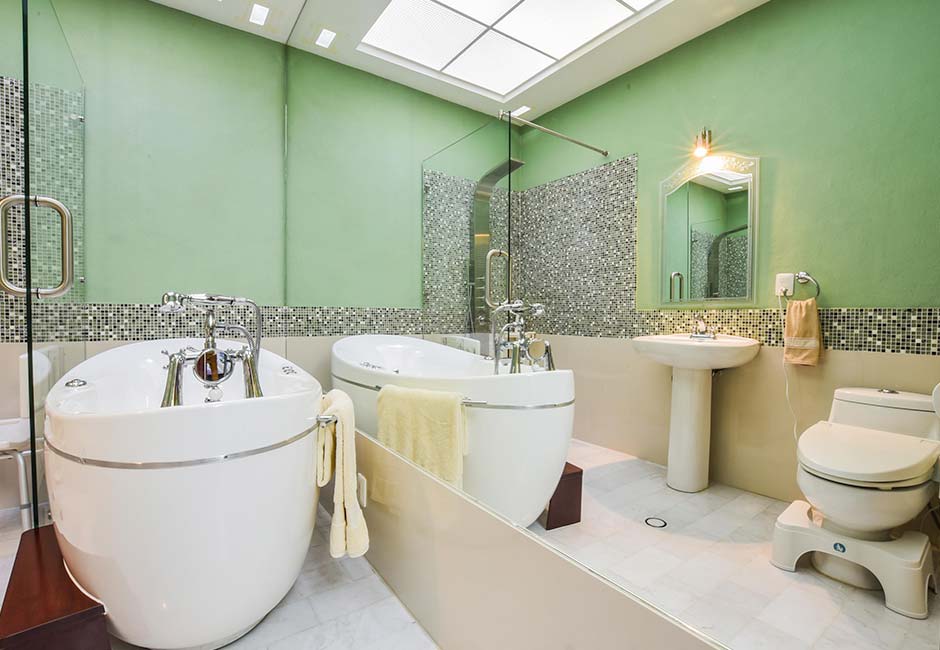 Baño completo con cabina de vapor con regadera y sistema de sonido